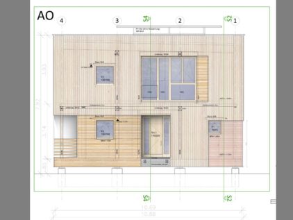 Das neue Einfamilienhaus wurde von einer Baugenossenschaft im Passivhausstandard als zentrales Büro- und Musterhaus 2023 erstellt. Es ist wegen Insolvenz nicht vollständig fertiggestellt und steht jetzt zum Verkauf.