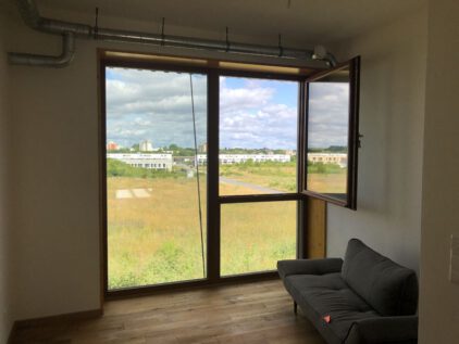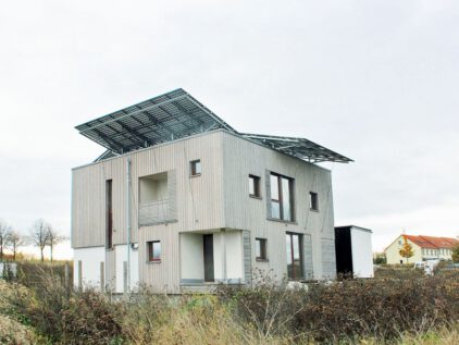 Das neue Einfamilienhaus mit 2 Stellplätzen steht in Bemerode, einem Ortsteil der Stadt Hannover. Das Gebäude wurde von einer Baugenossenschaft im Passivhausstandard als zentrales Büro- und Musterhaus 2023 erstellt.